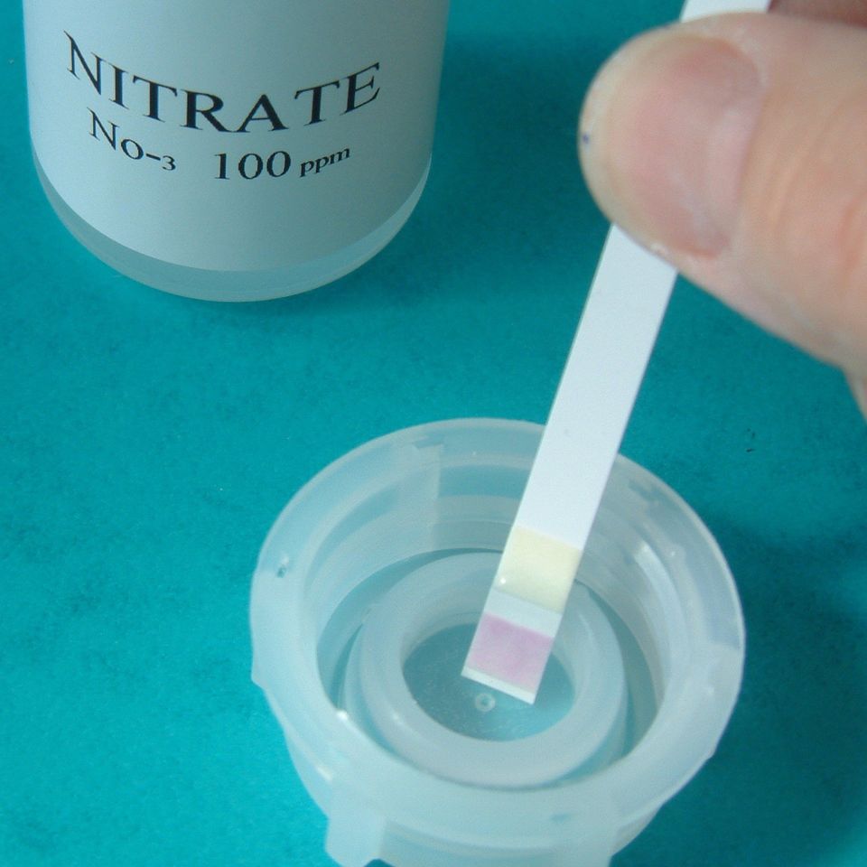 Etapa 1 Prepare a solução da amostra a ser testada. Etapa 2 Insira a tira de teste não utilizada na cabeça de leitura do Nitrachek para calibrar / tira zero e feche a hachura. Etapa 3 Quando o medidor ler Abrir e remover tiras, mergulhe cuidadosamente em sua solução de amostra por 2-3 segundos, após a contagem regressiva, remova e sacuda vigorosamente o excesso de solução e aguarde 60 segundos (temporizador de contagem regressiva em Nitrachek) para alterar a cor. Etapa 4 Quando a contagem regressiva se aproximar de 60 segundos (bipes audíveis) 3, 2, 1, insira a tira de teste ativada na cabeça de leitura (LEDs voltados para a frente) e feche a escotilha. A medição é automática e os resultados são exibidos imediatamente no LCD grande em ppm. Resultados em mg / l em 60 segundos!